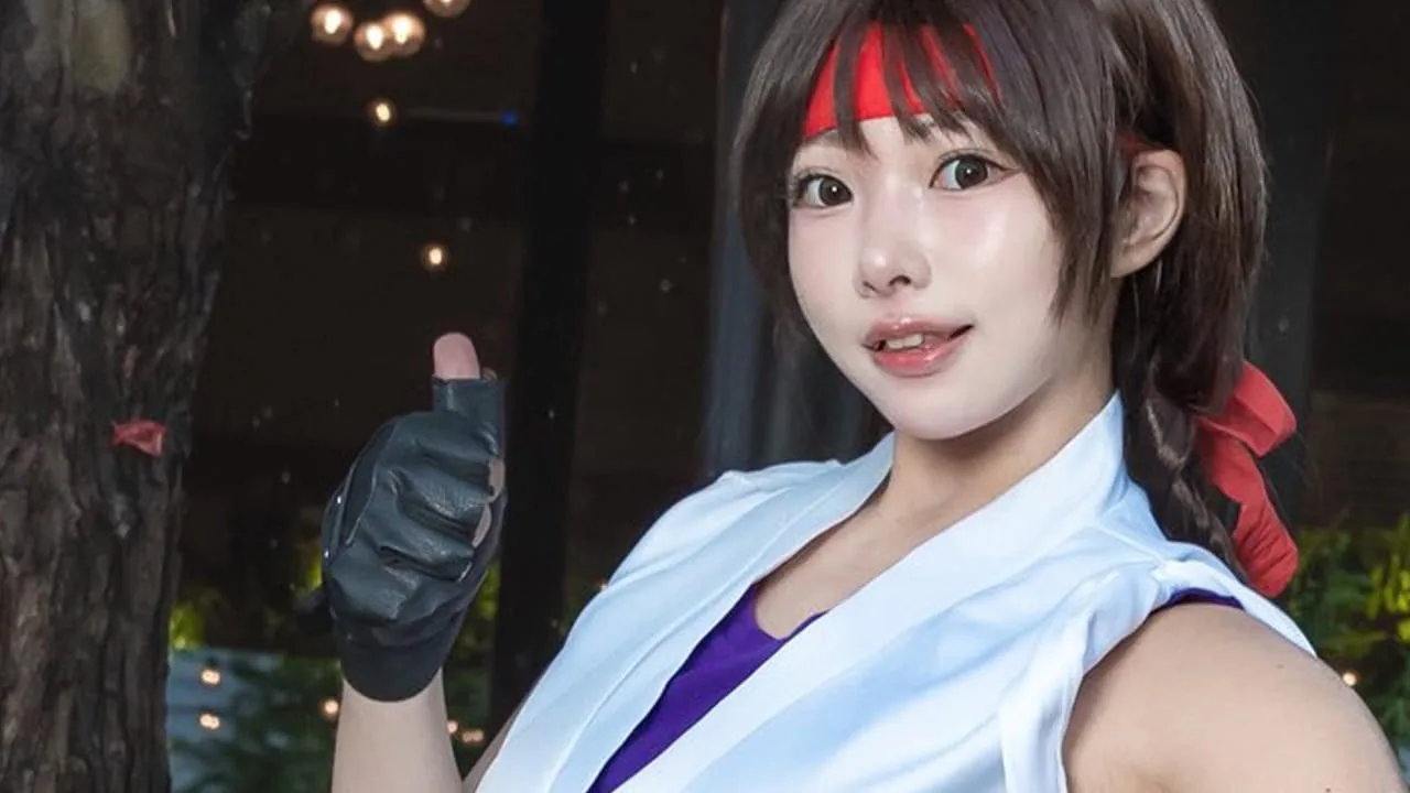 人気格闘ゲーム『ザ・キング・オブ・ファイターズ』シリーズなどに登場するユリ・サカザキのコスプレをしているカットだ。